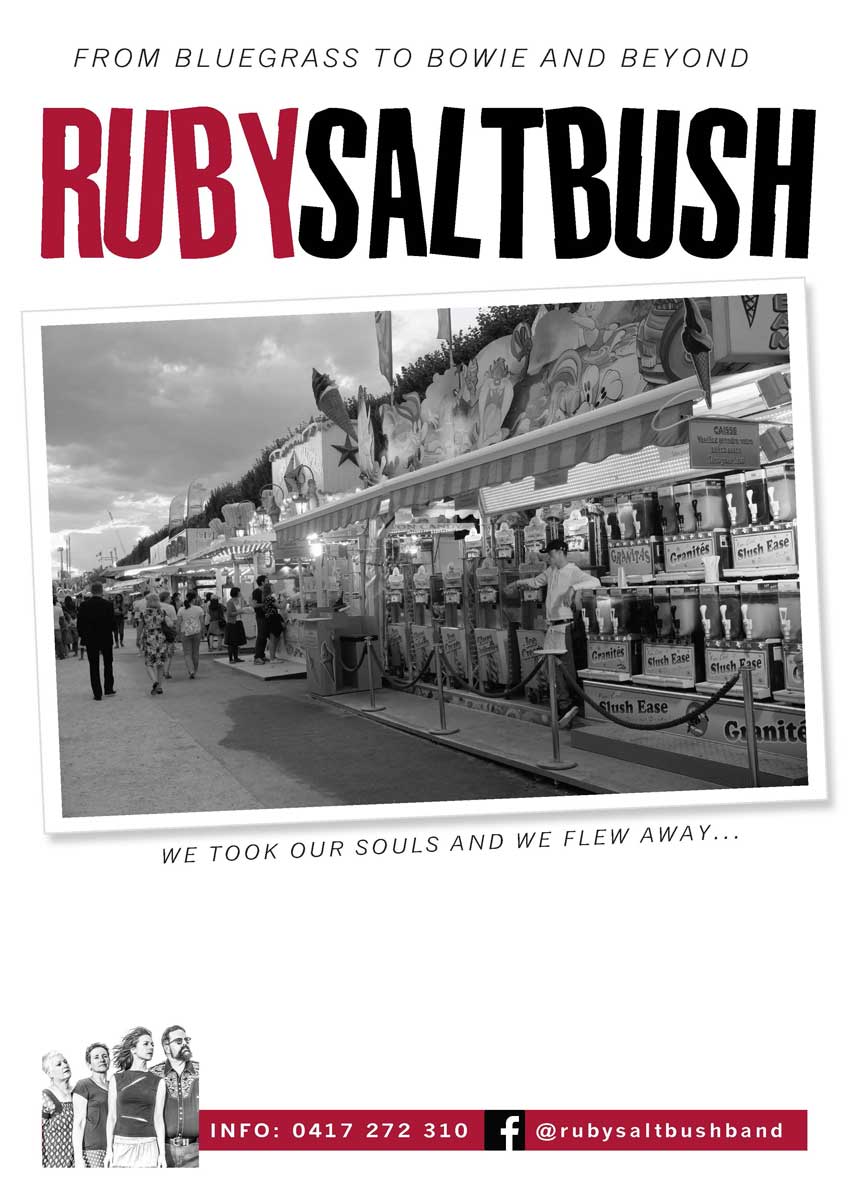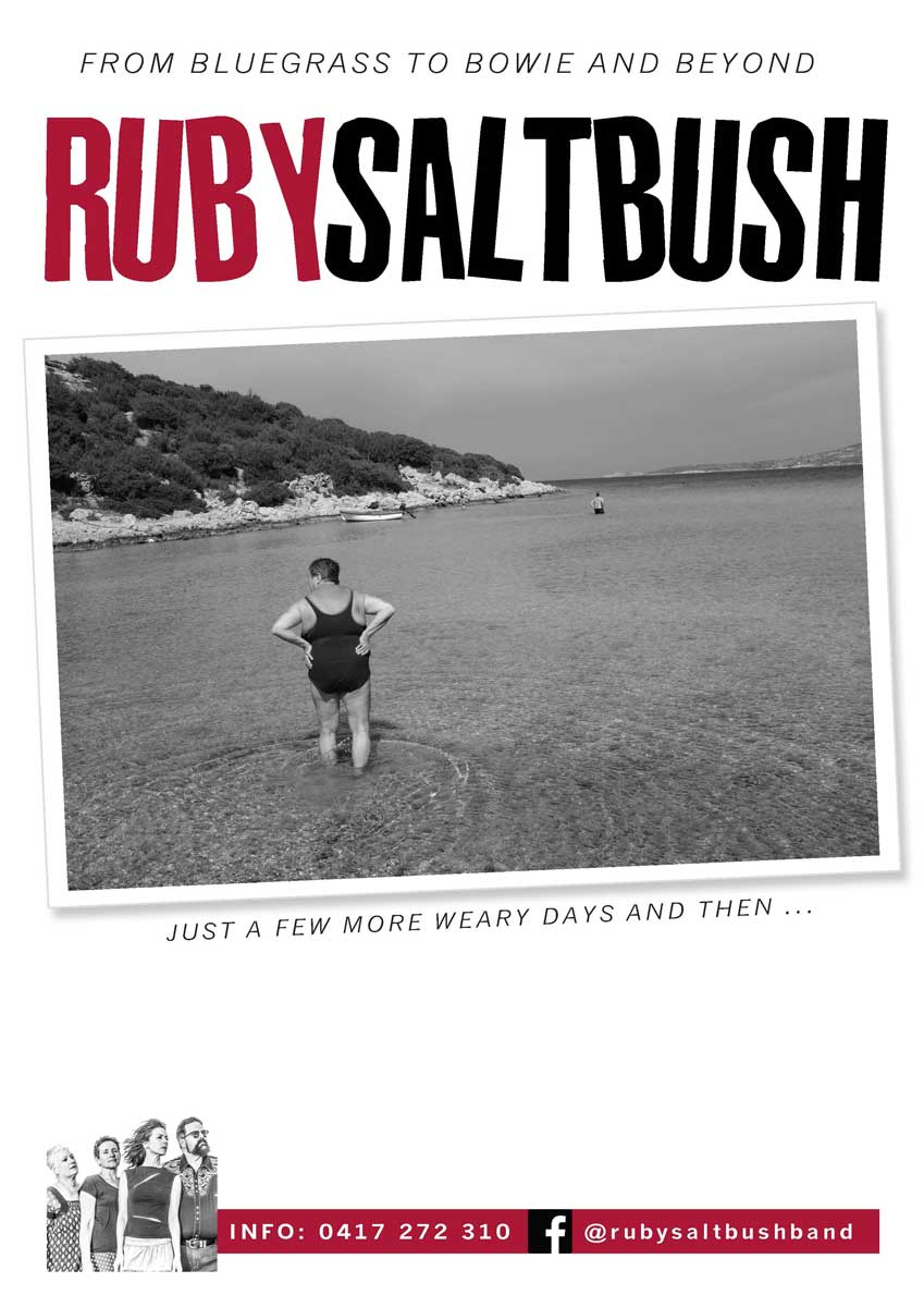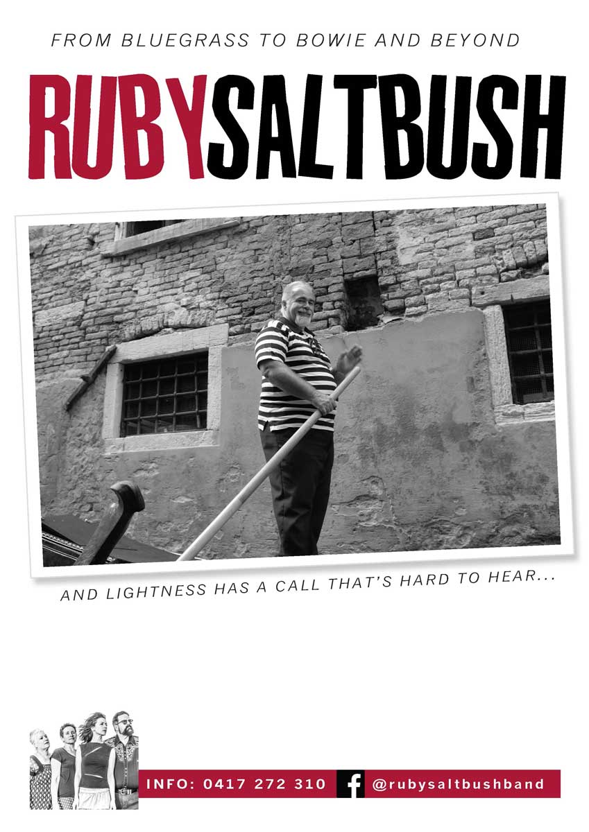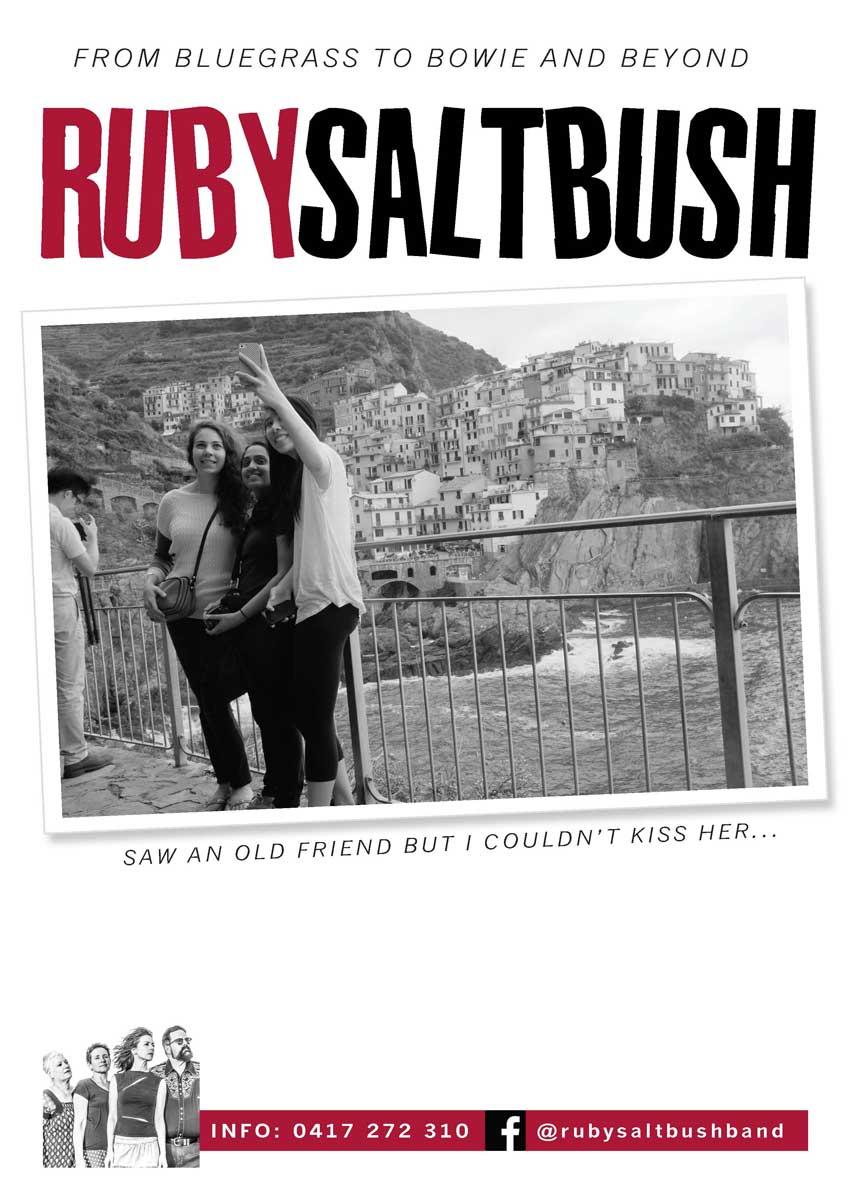 Ruby Saltbush has a series of posters with original artwork by Kate Butler. Each contains a line from a song we love (and perform). If you would like to purchase a signed poster in A4 or A3 size, please contact us.
